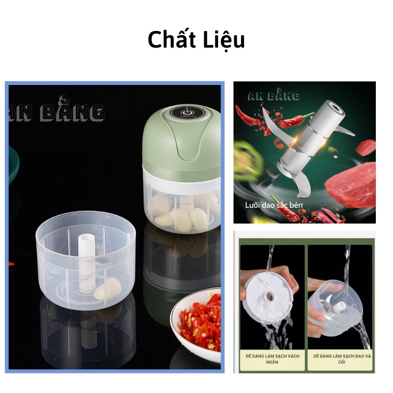 - Vận hành Mạnh mẽ : Máy xay tỏi ớt cầm tay mini đa năng có tốc độ quay 9500 vòng/phút với lưỡi dao bằng thép không gỉ giúp bạn chế biến thực phẩm, rau củ quả hoặc gia vị nhanh chóng chỉ với 1 nút bấm.