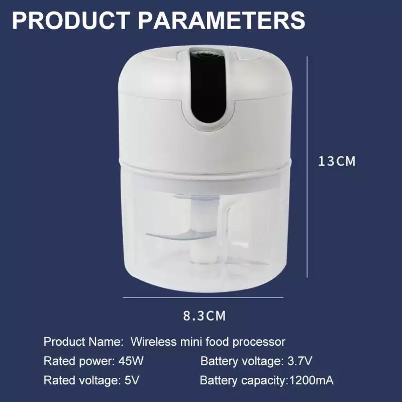 Giới thiệu Máy Xay Mini Không Dây 250ml Dụng Cụ Xay Tỏi Ớt 3 Lưỡi Dao Tích Hợp Pin Có Thể Sạc (Nhựa Dẻo)