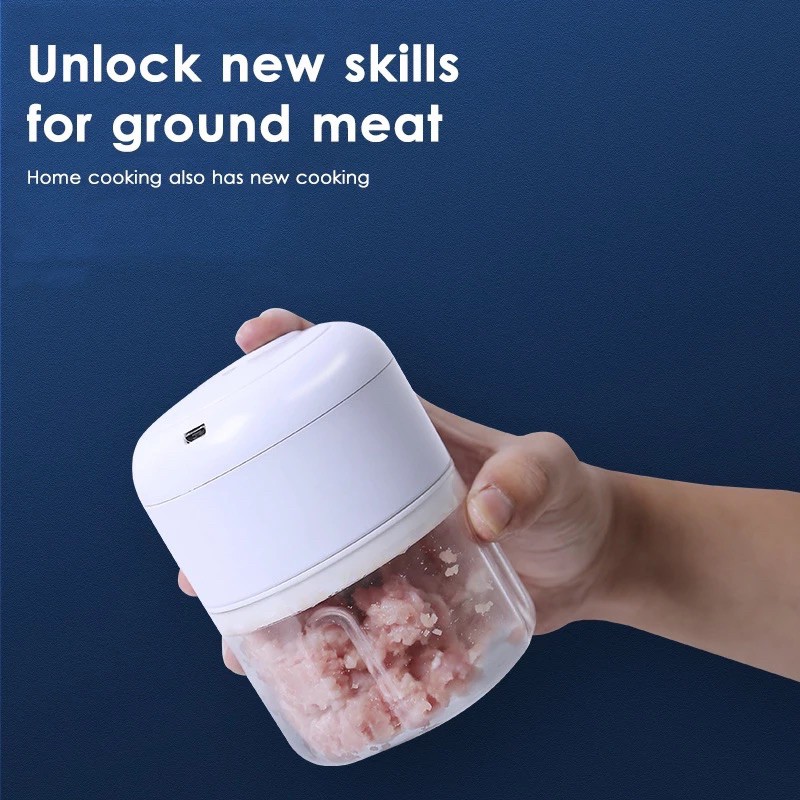 Máy Xay Mini Không Dây 250ml Dụng Cụ Xay Tỏi Ớt 3 Lưỡi Dao Tích Hợp Pin Có Thể Sạc (Nhựa Dẻo)