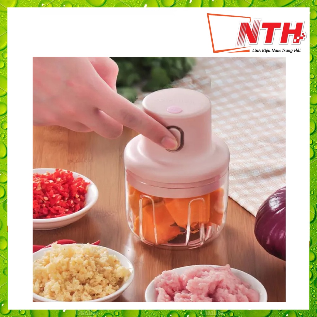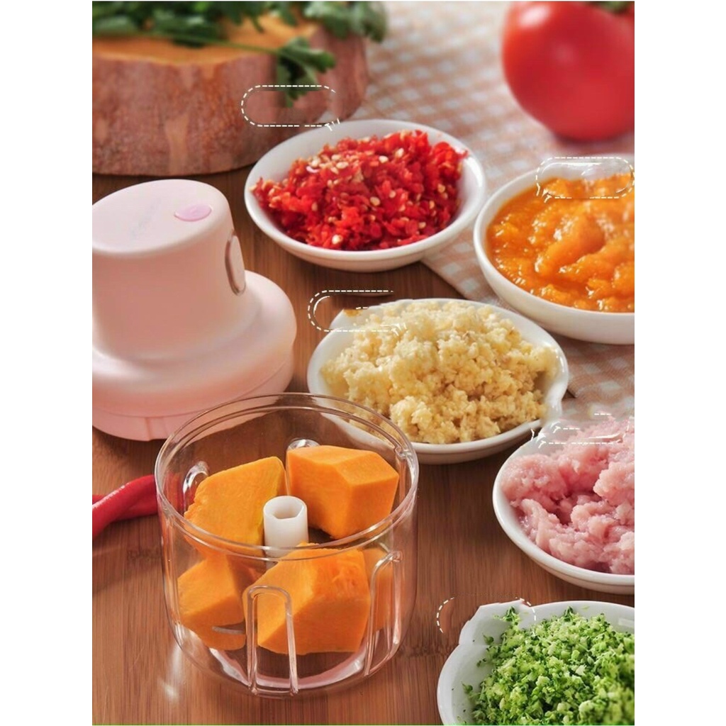 Giới thiệu Máy Xay Mini Nắp Hồng Sạc Điện Cầm Tay, Có Cổng Sạc Usb, Xay Hành, Tỏi, Thịt, Rau Củ Quả 250ml