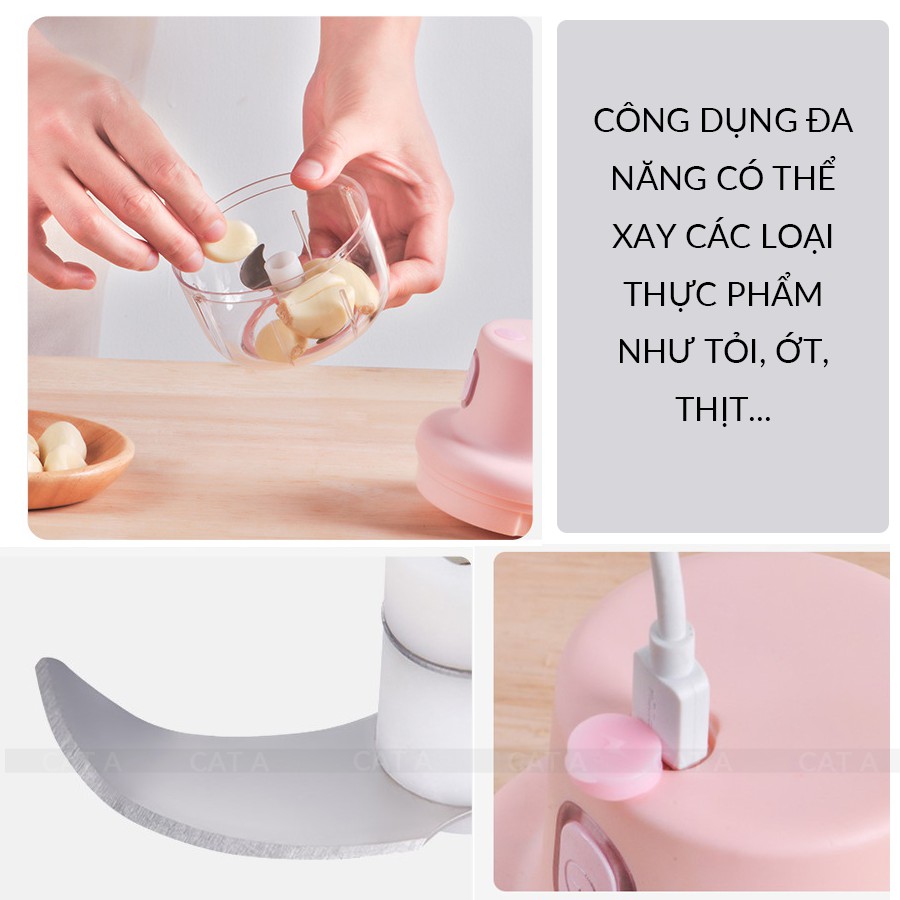 Máy xay mini sạc cổng USB tiện lợi - Xay thịt, tỏi, ớt, rau củ quả (thể tích 250ml)
