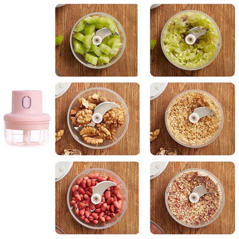 Máy Xay Mini Sạc Điện, Có Cổng Sạc Usb, Xay Hành, Tỏi, Rau Củ Quả - Tiện Lợi Nhỏ Ngọn - Dung Tích 250ml