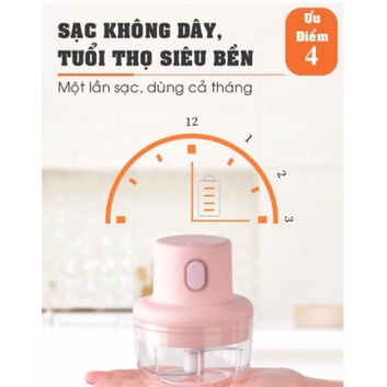 Máy Xay Mini Sạc Điện Có Cổng Sạc Usb, Nhỏ Gọn Tiện Ích Dễ Sử Dụng Xay Hành Tỏi Rau Củ Quả Thể Tích 250ML