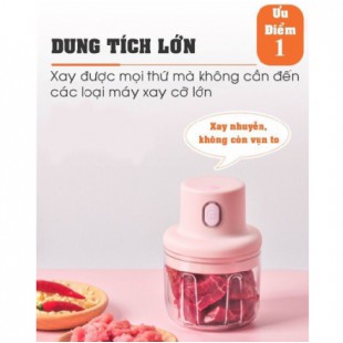 Máy Xay Mini Sạc Điện, Có Cổng Sạc Usb, Nhỏ Gọn Tiện Ích Dễ Sử Dụng, Xay Hành, Tỏi, Rau Củ