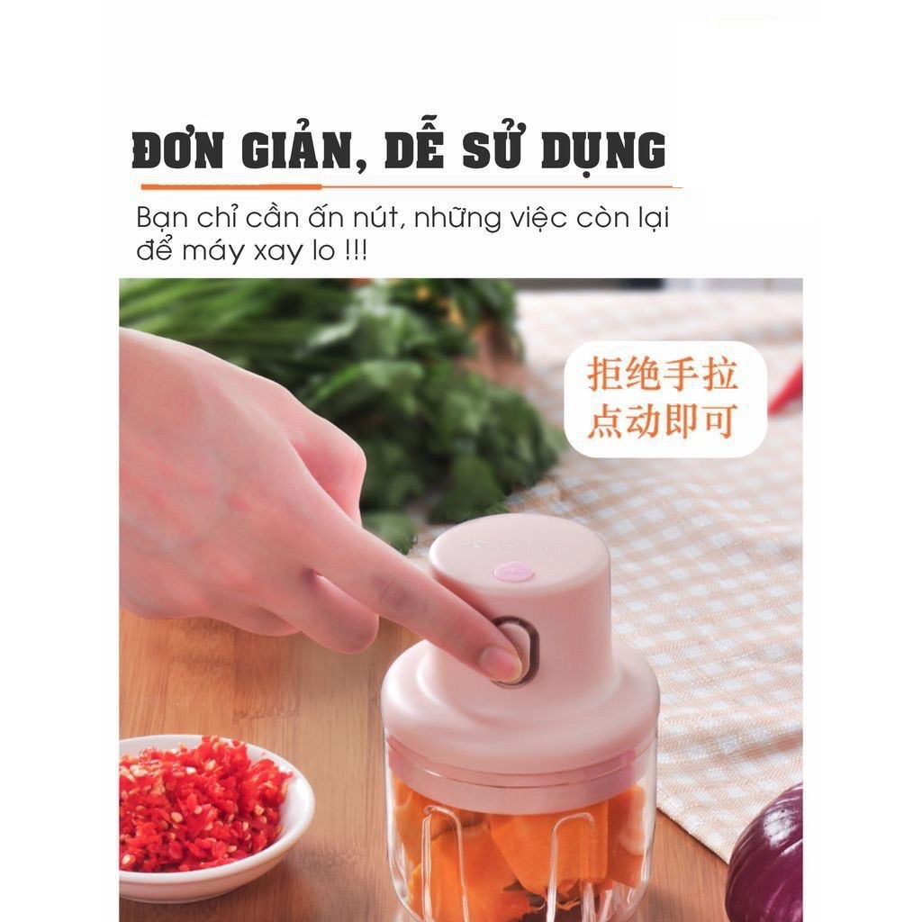 Máy Xay Mini Sạc Điện, Có Cổng Sạc Usb, Nhỏ Gọn Tiện Ích Dễ Sử Dụng, Xay Hành, Tỏi, Rau Củ