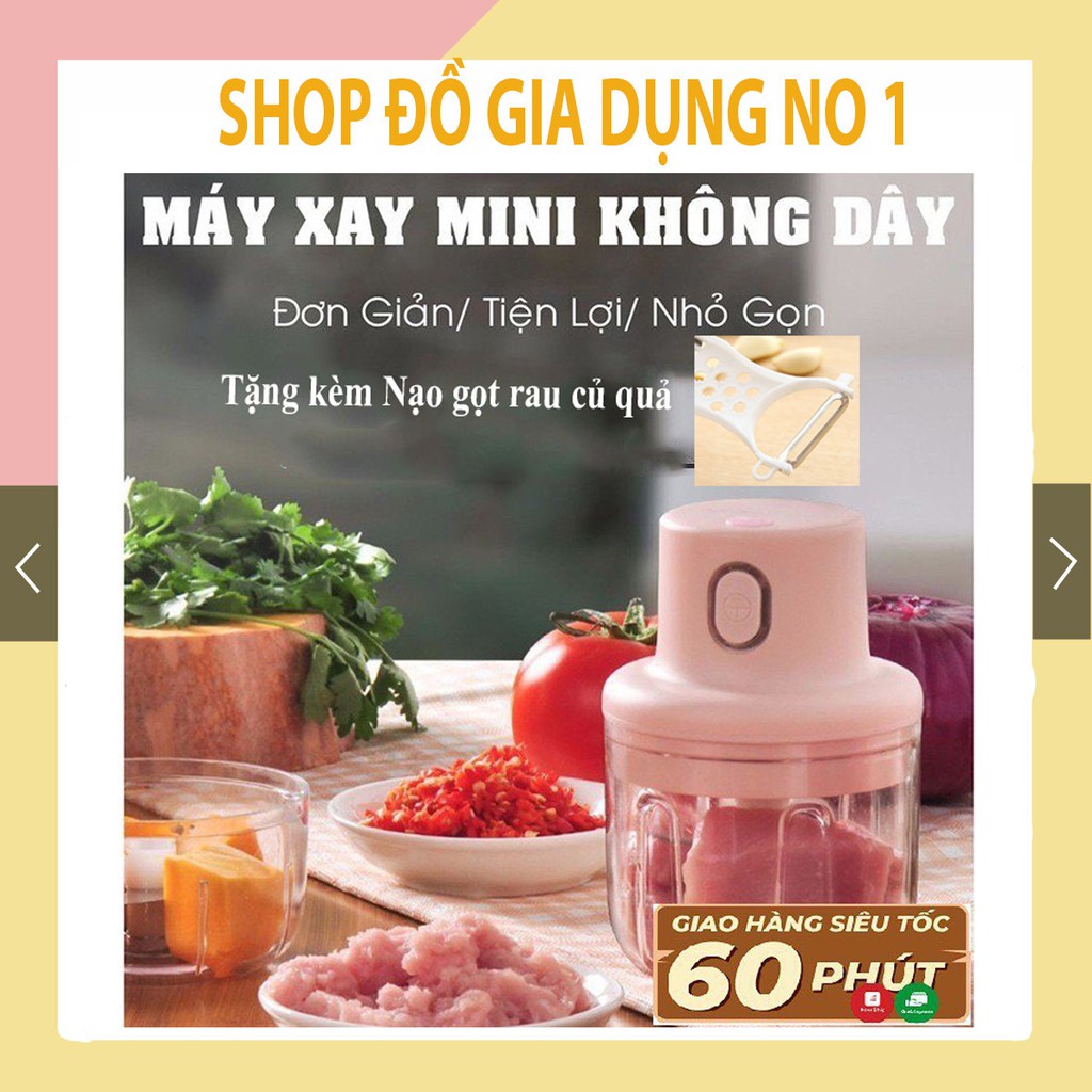 Máy Xay Mini Sạc Điện, Có Cổng Sạc Usb, Xay Hành, Tỏi, Rau Củ Quả