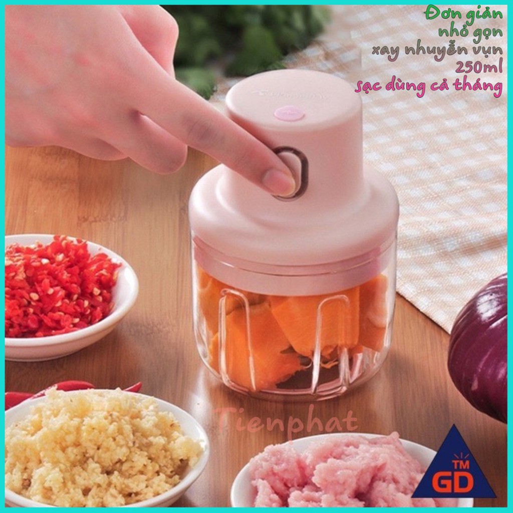 Máy Xay Mini Sạc Điện Có Cổng Sạc Usb, Nhỏ Gọn Tiện Ích Dễ Sử Dụng Xay Hành Tỏi Rau Củ Quả Thể Tích 250ML