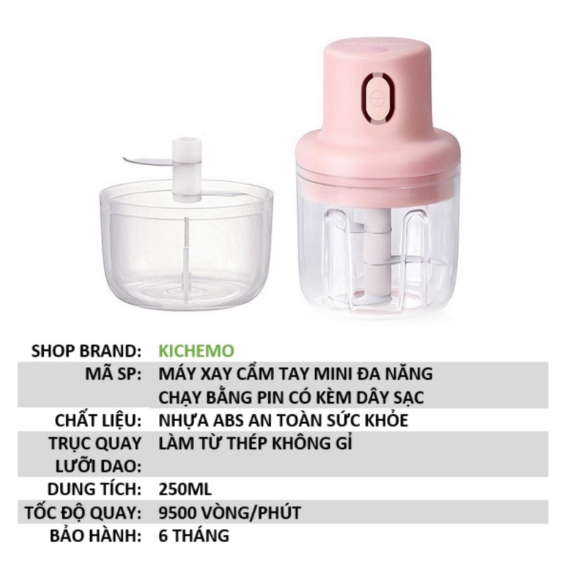 Giới thiệu Máy Xay Mini Sạc Điện, Có Cổng Sạc Usb, Xay Hành, Tỏi, Rau Củ Quả