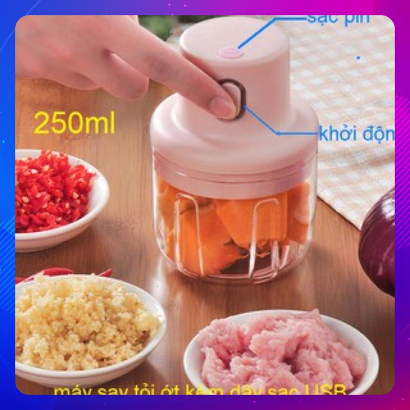 Máy Xay Mini Sạc Điện Kèm Cổng Sạc Usb, Xay Hành, Tỏi, Rau Củ Quả (Hàng loại I)