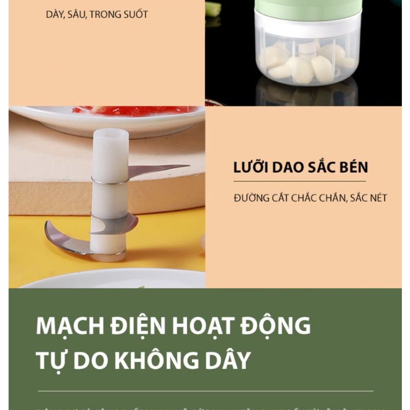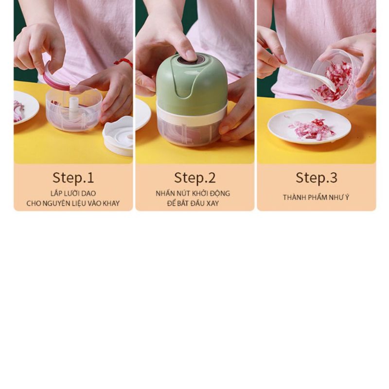 MÁY XAY MINI TỎI ỚT CẦM TAY 3 LƯỠI SẠC ĐIỆN DUNG TÍCH 250ML - Lùn Con Food