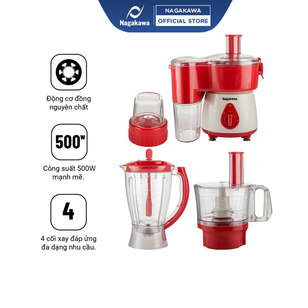 - Công năng: Đa chức năng: Xay sinh tố, đồ khô, ép và cắt lát thực phẩm