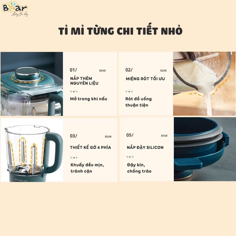 💧Chức năng xay, nấu của máy làm sữa hạt, máy xay đa năng Bear giúp giữ lại trọn vẹn chất dinh dưỡng của thực phẩm, do đó, máy làm sữa hạt, máy xay nấu đa năng Bear là một giải pháp hoàn hảo để chăm sóc sức khỏe các thành viên trong gia đình.