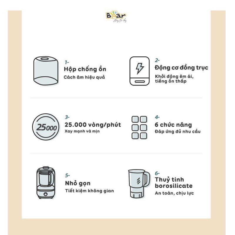 Thiết Bị Điện Gia Dụng > Đồ gia dụng nhà bếp > Máy chế biến thực phẩm & Xay thịt || Máy xay nấu đa năng cách âm Bear PBJ-B60W1Còn hàng