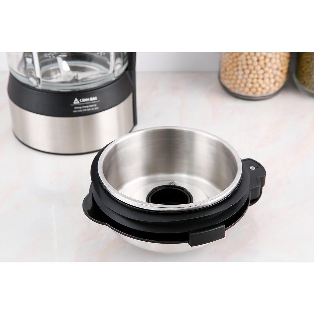Ngoài chân đế chống trượt, máy còn có nhiều tính năng an toàn khác như chỉ hoạt động khi cối xay lắp đúng khớp, tự ngắt khi hoạt động quá tải.