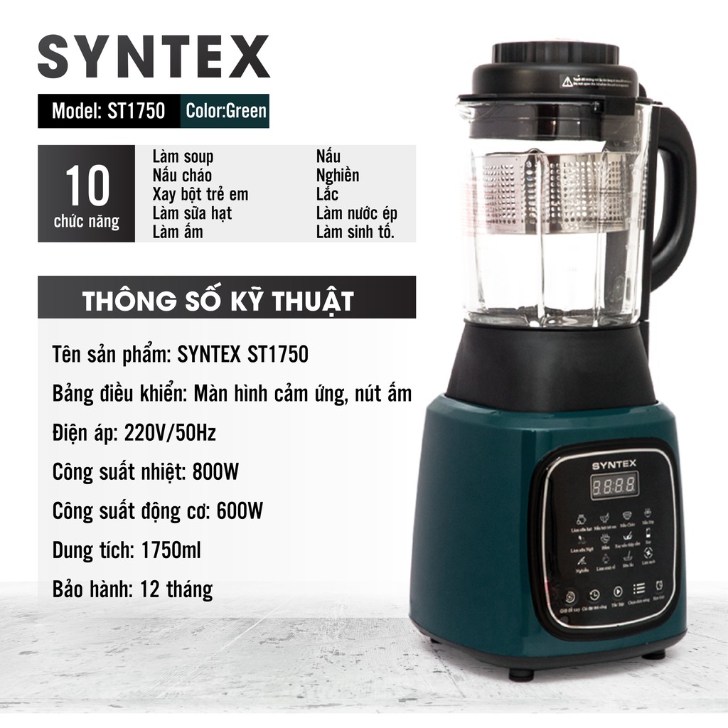 Thiết Bị Điện Gia Dụng > Đồ gia dụng nhà bếp > Máy ép, Xay sinh tố & Máy làm sữa đậu nành || [Mã 273ELHA100K0 hoàn 7% đơn 500K] Máy xay nấu sữa hạt đa năng SYNTEX Model ST1750Còn hàng