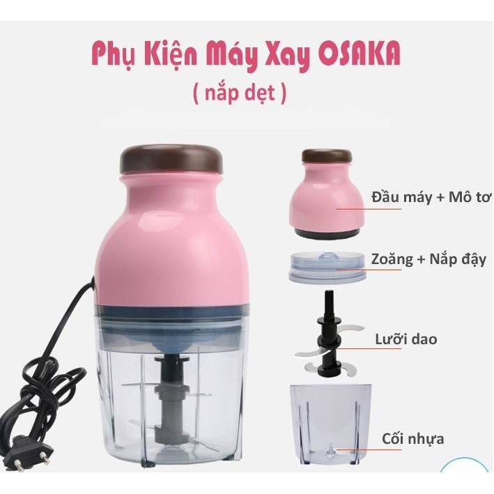 Máy xay Osaka đa chức năng loại nắp dẹp màu hồng xay các loại sinh tố với đá xay thịt.
