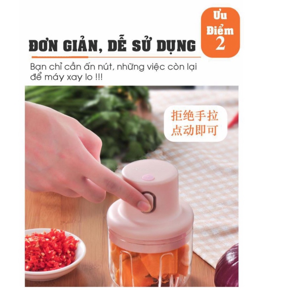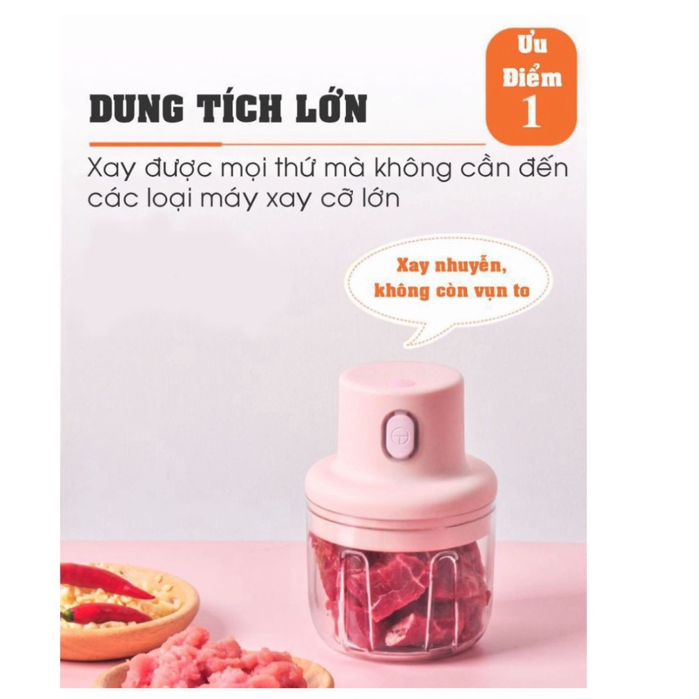 Máy xay thịt, tỏi ớt mini cầm tay sạc điện đa năng tiện lợi✅ ƯU ĐIỂM: