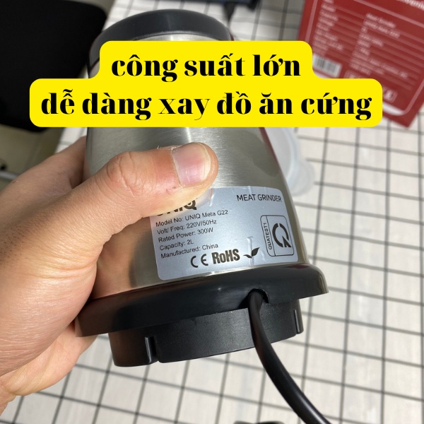 Máy xay thịt UNIQ Meta G22 sẽ giải quyết nỗi lo về ăn dặm cho các trẻ , không cần mẹ phải lo con mình ăn ở ngoài có được hay không ? Có ăn toàn vệ sinh không ? Chỉ cần mua những loại rau củ mà con mình thích ăn và bỏ vào máy xay chung với nhau và nấu lên thế là bé đã có bữa ăn tuyệt vời , đủ chất dinh dưỡng , an toàn vệ sinh.