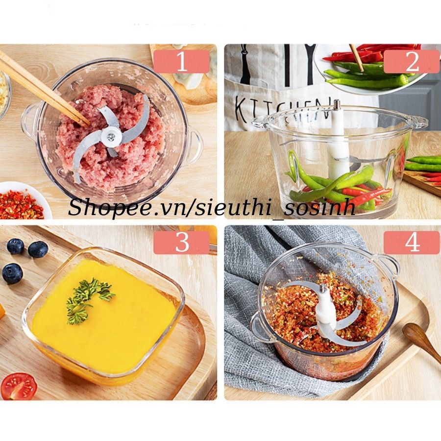 - Xay được thịt, cá, củ hành, tỏi, ớt.