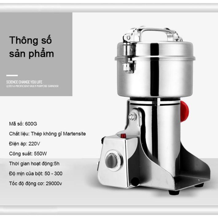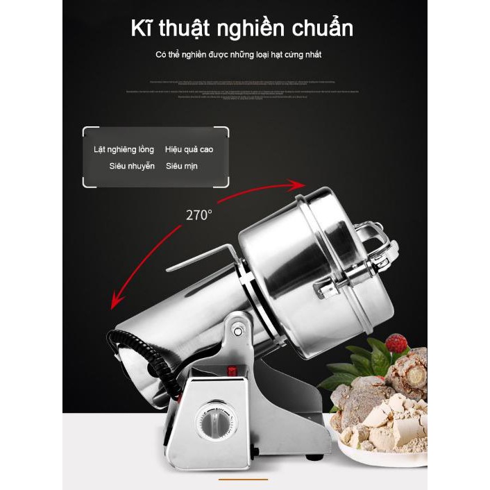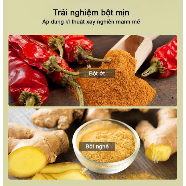 - Máy xay bột khô mịn công suất lớn, tốc độ vòng quay môtơ nhanh 2800 vòng/phút. Đem lại vận tốc lớn cho máy, khiến máy xay nhanh hơn gấp 3 lần so với các dòng máy thông thường khác.