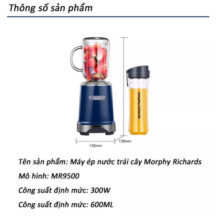 Máy Xay Sinh Tố 2 Ly Morphy Richards MR9500 - gồm 2 cốc với dung tích 600 ml - Tốc độ quay: 24000 vòng/phút🍇Ưu điểm của máy xay sinh tố: