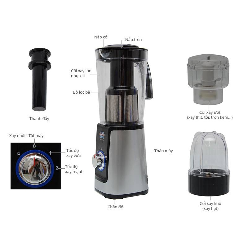 Chức năng: Xay hoa quả, sinh tố + xay thịt, cá, tôm + xay thực phẩm khô