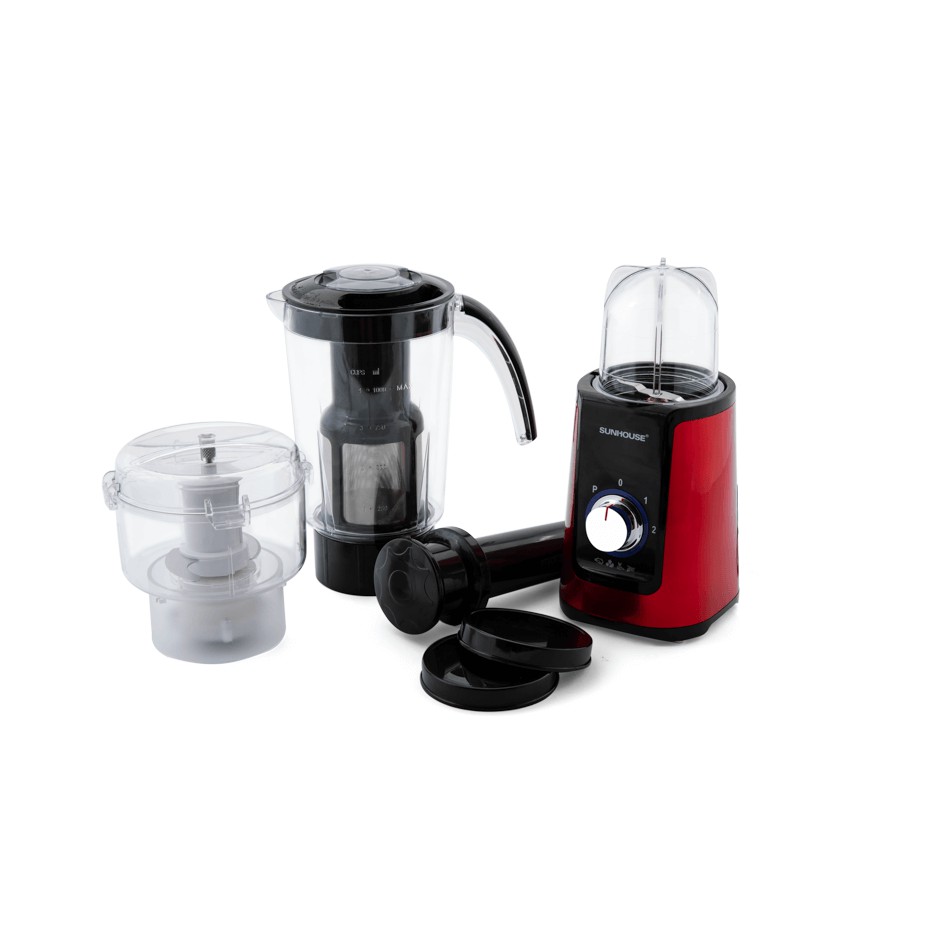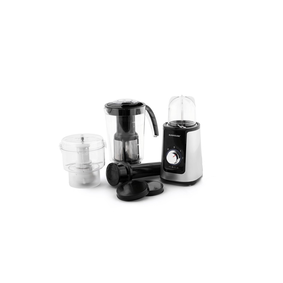Máy xay sinh tố đa năng SUNHOUSE SHD5322 có thiết kế hiện đại với một cối xay sinh tố kèm lưới lọc bã và 1 thanh đẩy giúp bạn xay trái cây được nhanh hơn, sánh mịn hơn. Bên cạnh đó là 1 cối xay thực phẩm khô và 1 cối xay thịt, đáp ứng mọi nhu cầu làm bếp của bạn.