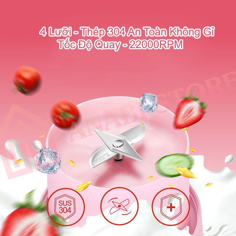 Máy Xay Sinh Tố 4 Lưỡi ANABI - Máy Xay Sinh Tố Cầm Tay Mini Tích Điện