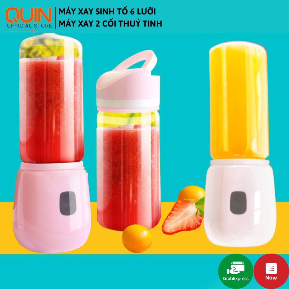 Máy Xay Sinh Tố 6 Lưỡi 2 Cối Thủy Tinh Công Suất Lớn - Sạc pin kèm dây sạc tiện lợi