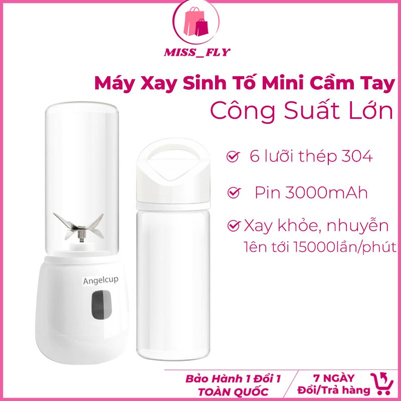 Máy Xay Sinh Tố 6 Lưỡi 2 Cối Thủy Tinh Công Suất Lớn - Máy xay đa năng cầm tay sạc pin kèm dây sạc tiện lợi