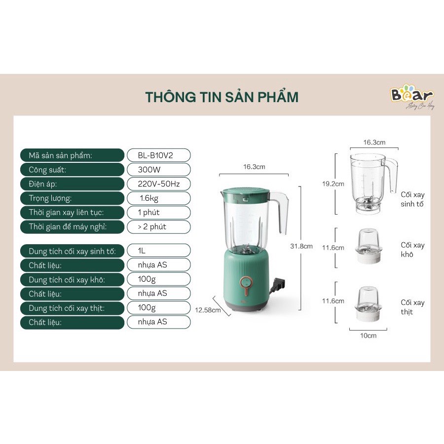 - Tên sản phẩm: Máy xay 3 in 1 đa năng Bear LLJ-C10P1 (BL-B10V2)
