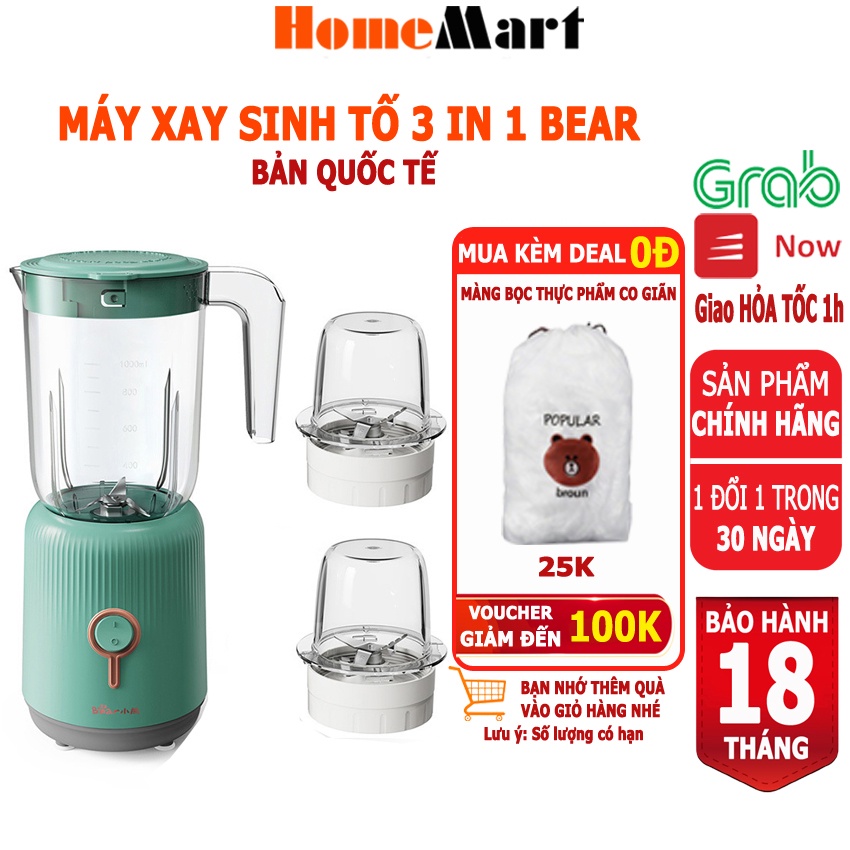 Máy xay sinh tố Bear 3 In 1 BẢN QUỐC TẾ (Hàng chính hãng 1 đổi 1 trong 30 ngày, bảo hành 18 tháng) – HomeMart