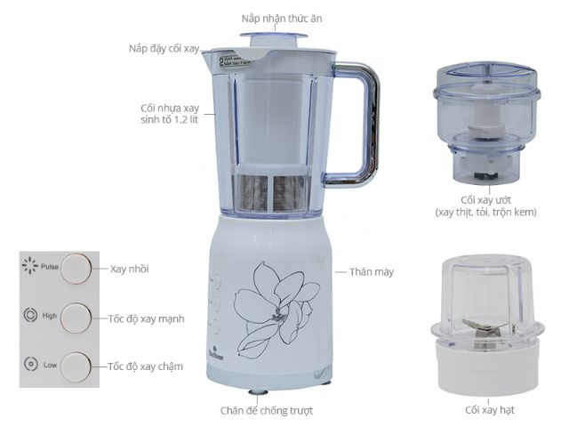 - Chức năng chính: Xay sinh tố, Xay hạt, Xay thịt, đánh trứng