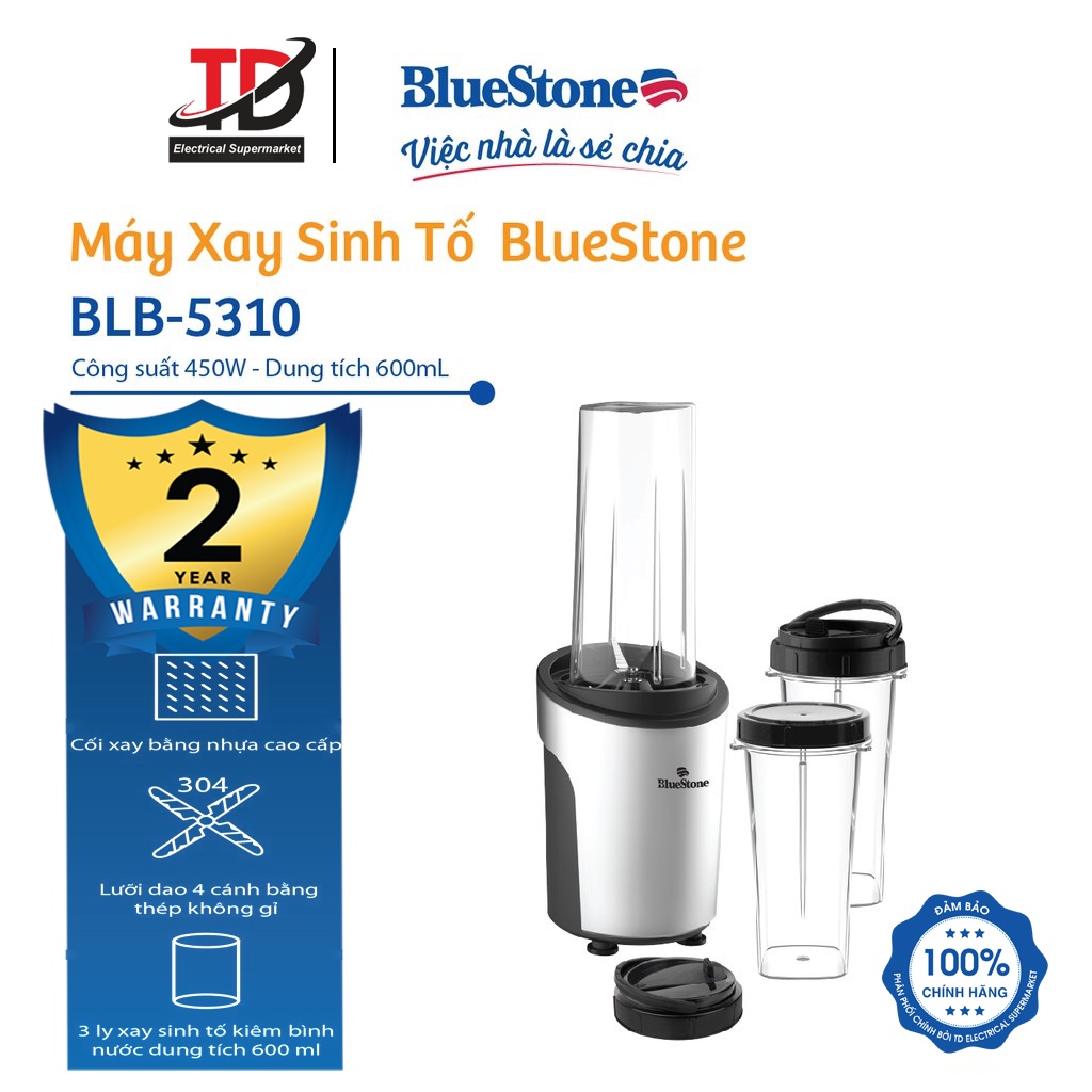 Giới thiệu [Mã ELHAMS5 giảm 6% đơn 300K] Máy xay sinh tố BlueStone personal blender BLB-5310 Kèm 3 Cối Xay - Công suất 450w