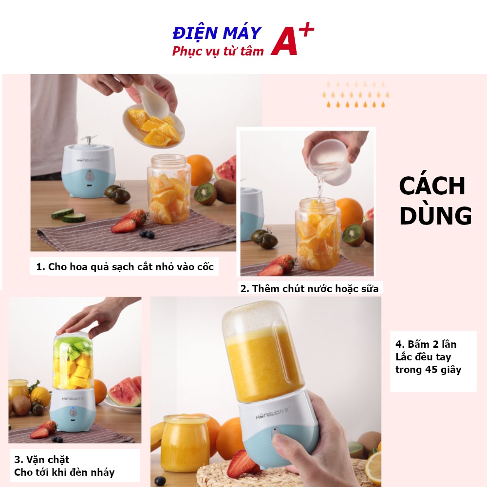 Máy xay sinh tố cầm tay 300ml, sạc USB, 6 lưỡi giúp bạn dễ dàng tạo ra các cốc sinh tố 300ml mọi nơi mọi lúc.