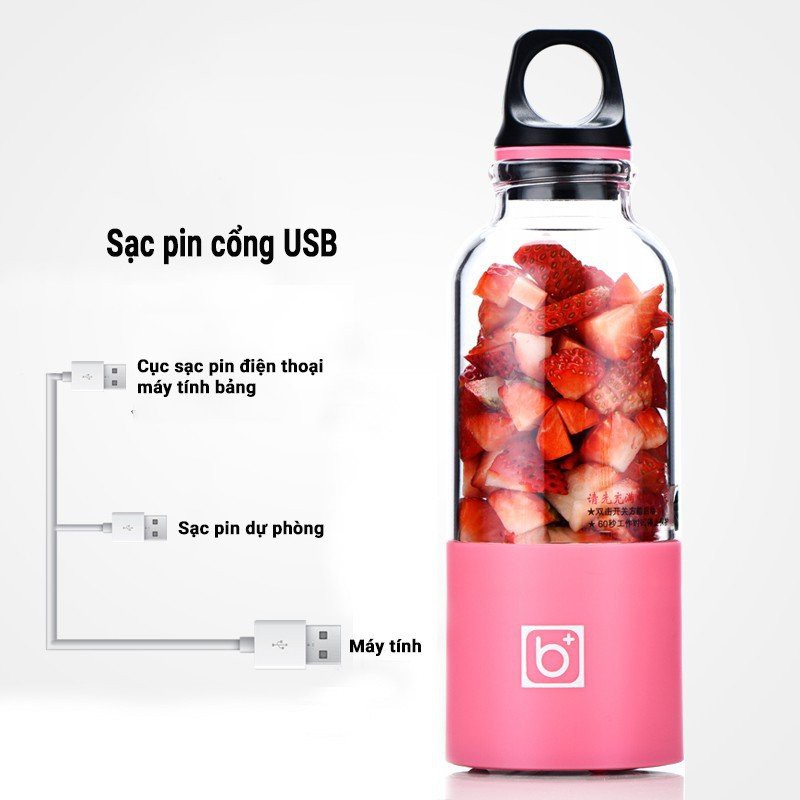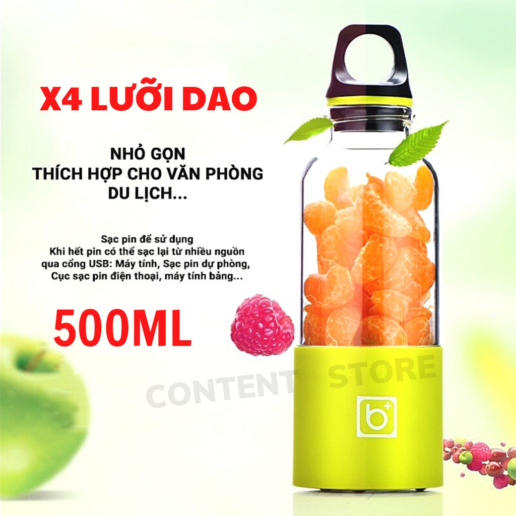 Máy Xay Sinh Tố Cầm Tay 4 LƯỠI 500ML Bingo Juicer Cup Sạc Pin 25W - CHỐNG NƯỚC CHỐNG VA ĐẬP