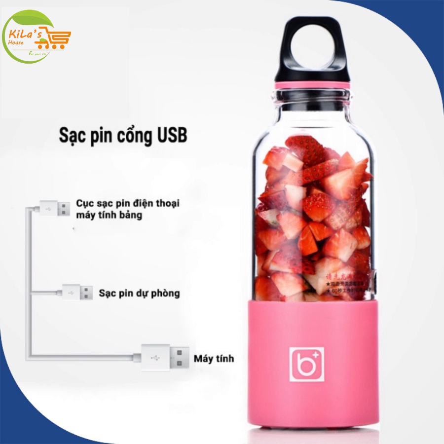 Máy Xay Sinh Tố Cầm Tay 500ML, Pin Sạc, 4 Lưỡi Bingo Juicer Cup - Máy Xay Sinh Tố Mini Đa Năng Cầm Tay Tiện Lợi