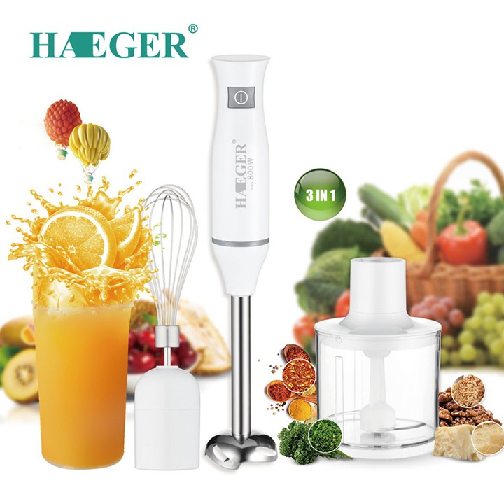 Thiết Bị Điện Gia Dụng > Đồ gia dụng nhà bếp > Máy ép, Xay sinh tố & Máy làm sữa đậu nành || [Mã 253ELSALE hoàn 7% đơn 300K] Máy xay sinh tố cầm tay Chính Hãng HAEGER công suất 800WCòn hàng