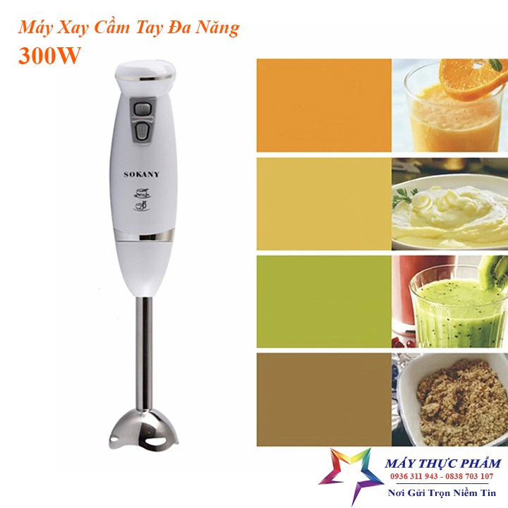 + Máy xay cầm tay Sokany – có rất nhiều chức năng như xay các loại hạt ngũ cốc, đánh trứng, xay sinh tố…