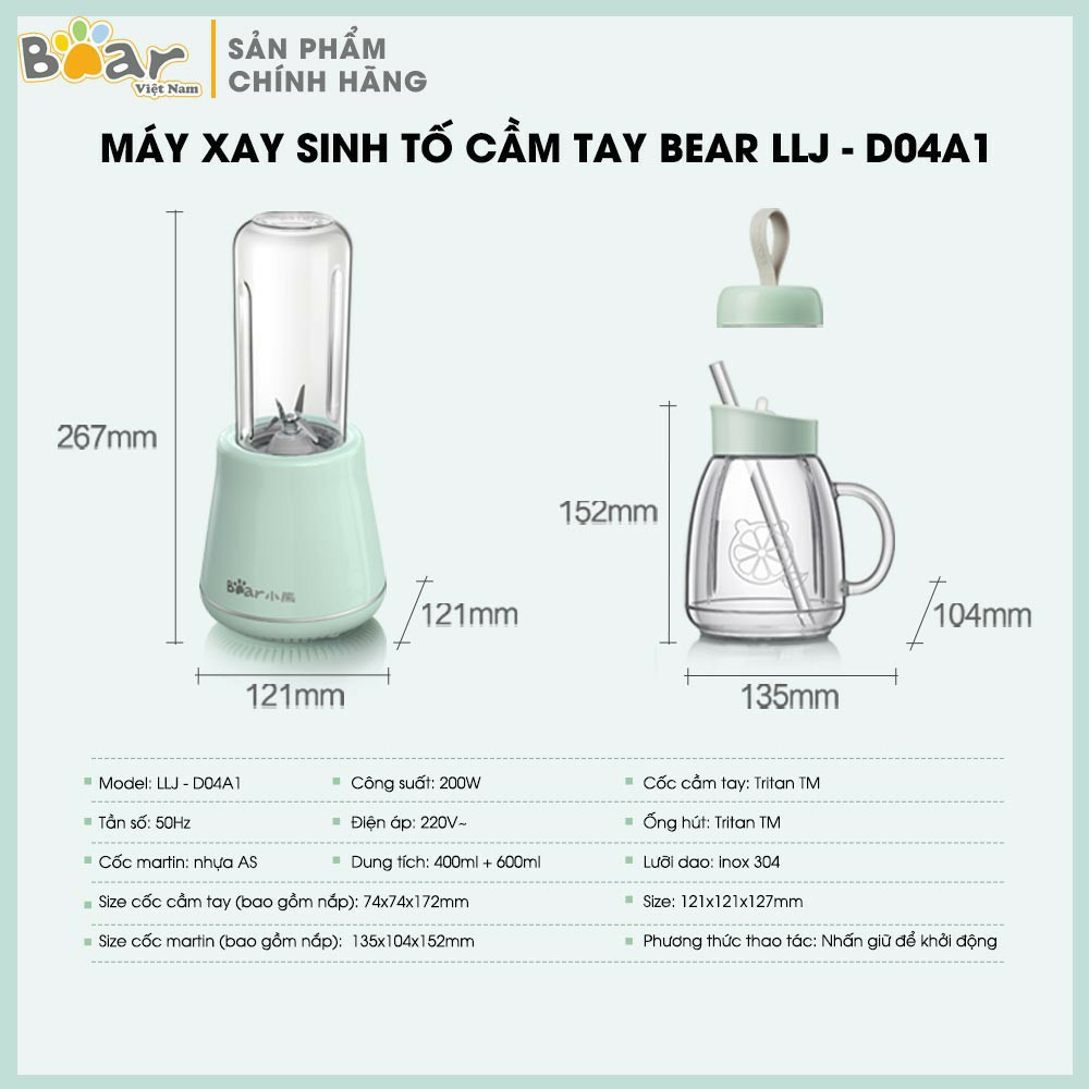 Giới thiệu Máy Xay Sinh Tố Cầm Tay Đa Năng Bear Dung Tích 1,0L Model LLJ-D04A1