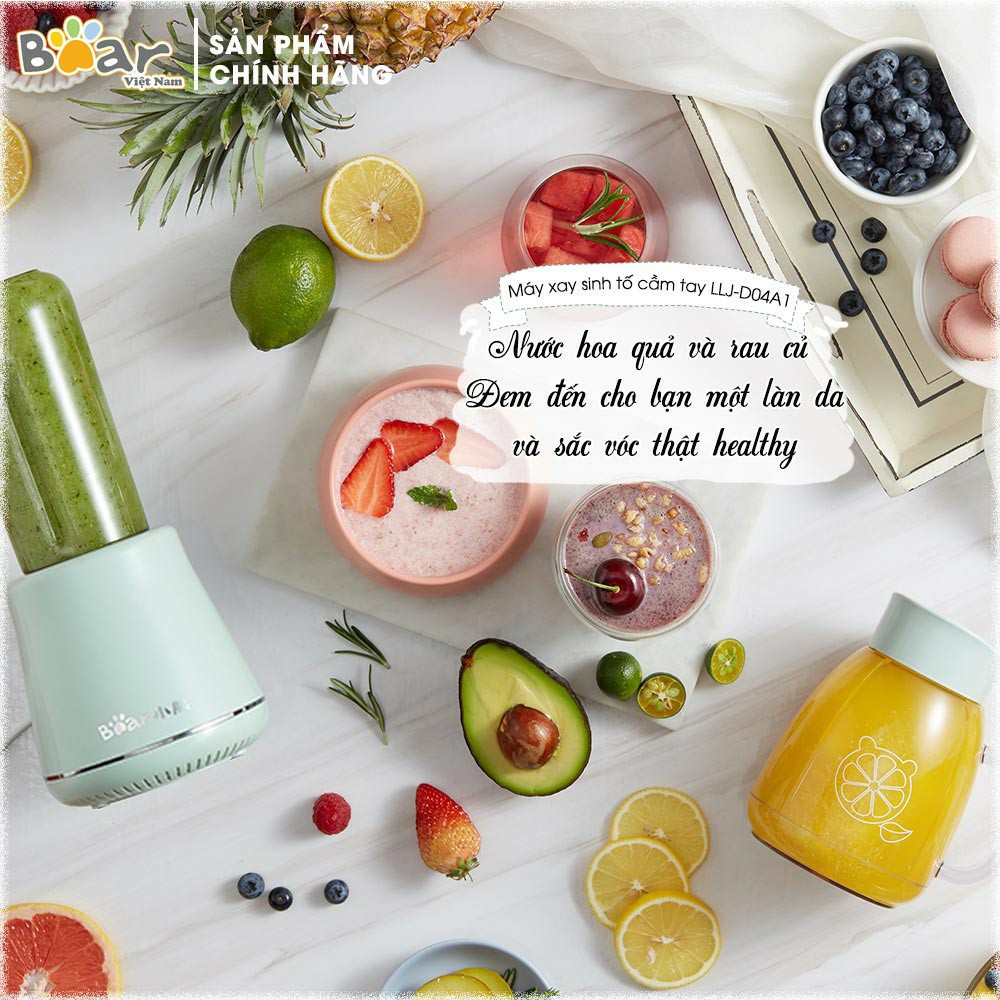 MÁY XAY SINH TỐ, HOA QUẢ ĐA NĂNG BEAR LLJ-D04A1:🍹Thao tác sử dụng nhẹ nhàng và đơn giản. Chỉ cần ấn máy nhẹ xuống là máy sẽ tự xay, chủ động ngưng xay liên tục.
