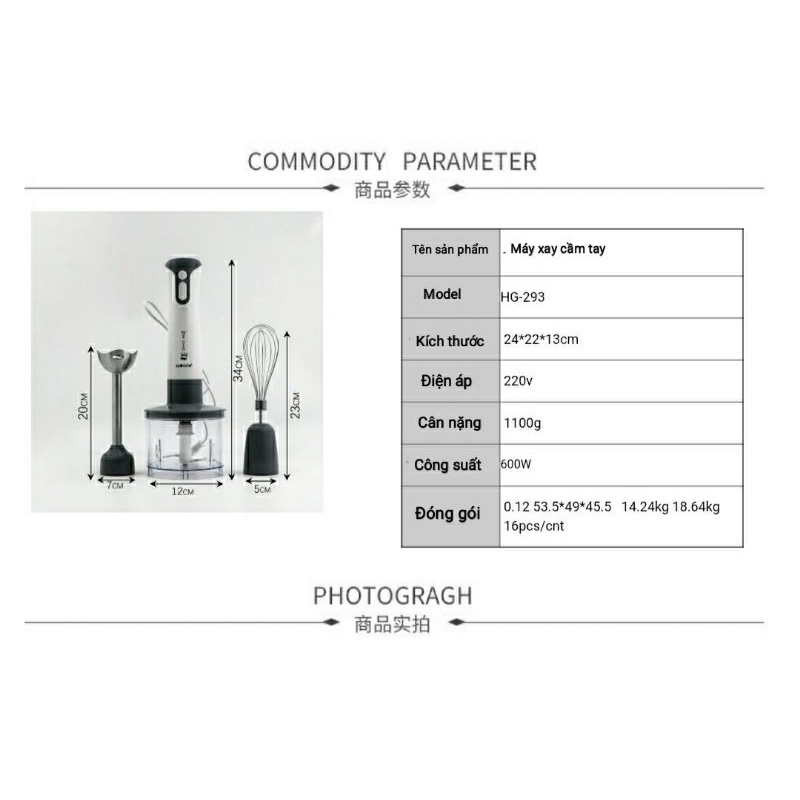 I, THÔNG TIN MÁY:- Loại máy : Máy xay sinh tố cầm tay HAEGER
