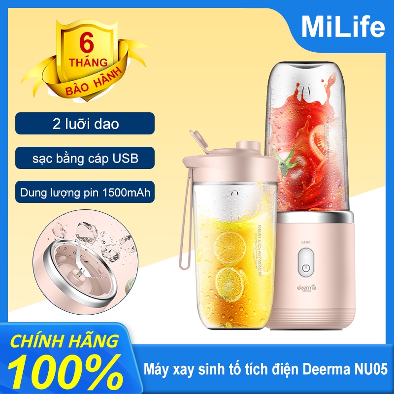 Máy xay sinh tố cầm tay không dây Xiaomi Deerma Mini Juice Blender Tiện Dụng thông minh NU05-Hàng chính hãngMÁY XAY SINH TỐ THÔNG MINH XIAOMI DEERMA