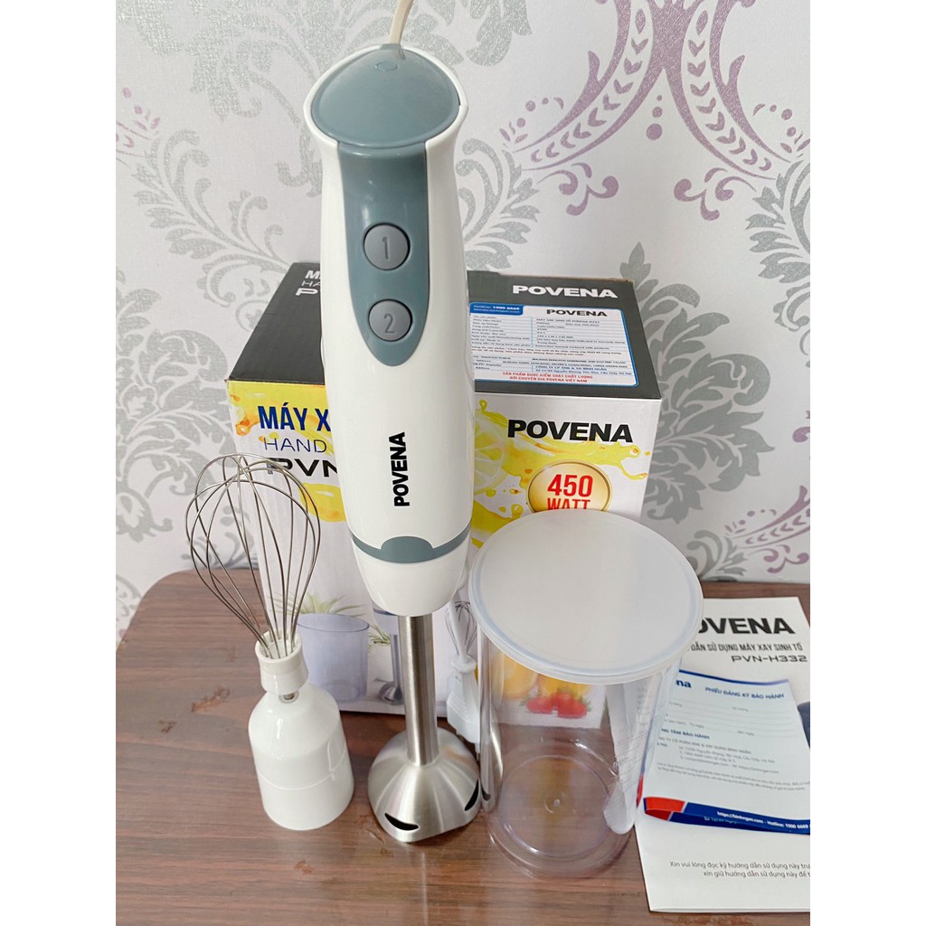 ------------------------------------------------------------------------------------------------------------------------------------------------------Thông số kỹ thuật của máy xay sinh tố cầm tay Povena PVN-H332 kèm lồng đánh trứng