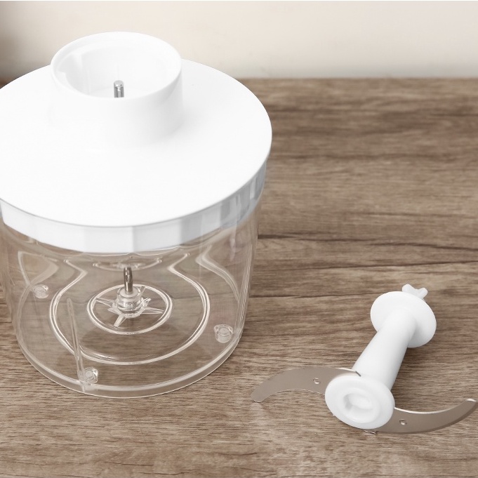 - Cốc xay có dung tích 0.5 lít và cối xay thịt bằng nhựa gọn nhẹ, an toàn, dễ vệ sinh.