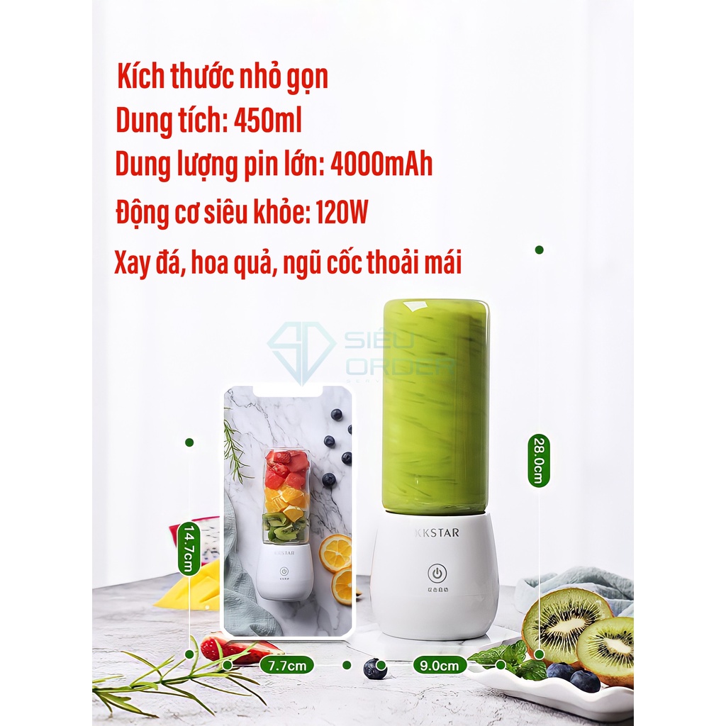 Máy xay sinh tố cầm tay KKSTAR JUICECUP dung tích 450ml pin 4000mAh công suất 120W