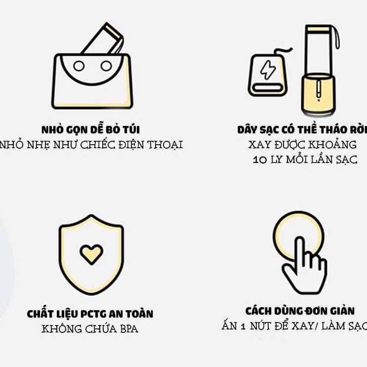 ⭐ Xay được 5-10 ly mỗi lần sạc đầy