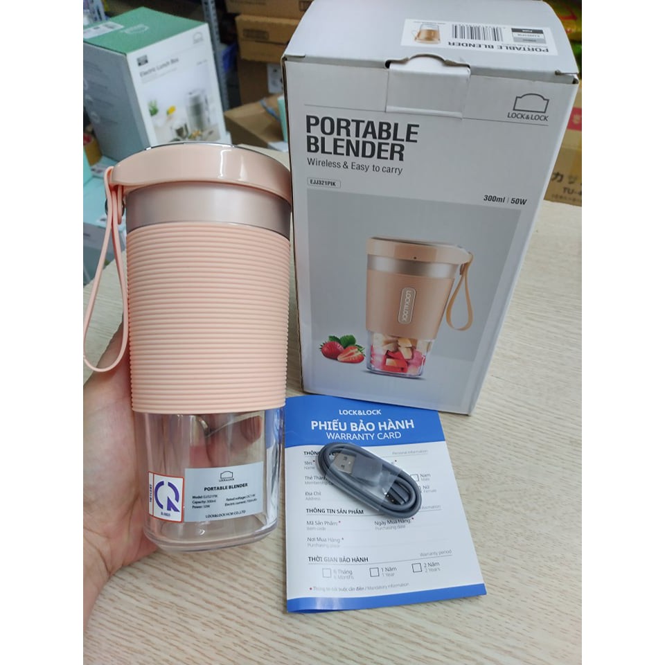 Sở hữu thiết kế thân hình trụ tinh tế, kiểu dáng nhỏ gọn tiện dụng, phù hợp đem theo khi đi du lịch cũng như dễ dàng di chuyển đến nhiều vị trí bạn mong muốn. Máy xay sinh tố cầm tay Lock&Lock giúp mọi thực phẩm chế biến giữ nguyên được chất dinh dưỡng, đem lại cho bạn những món ăn, thức uống vô cùng thơm ngon bổ dưỡng.Máy xay sinh tố mini này với lưỡi dao bằng thép không gỉ, có thể tháo rời dễ dàng vệ sinh và tiện lợi giúp xay nhỏ giúp đơn giản hóa quá trình sơ chế bằng cách xay hoặc băm nhỏ thực phẩm như hành, tỏi.... Cốc xay bằng nhựa trong suất cao cấp với dung tích 300ml và đặc biệt chiếc cối xay này có thể dùng làm bình đựng nước.