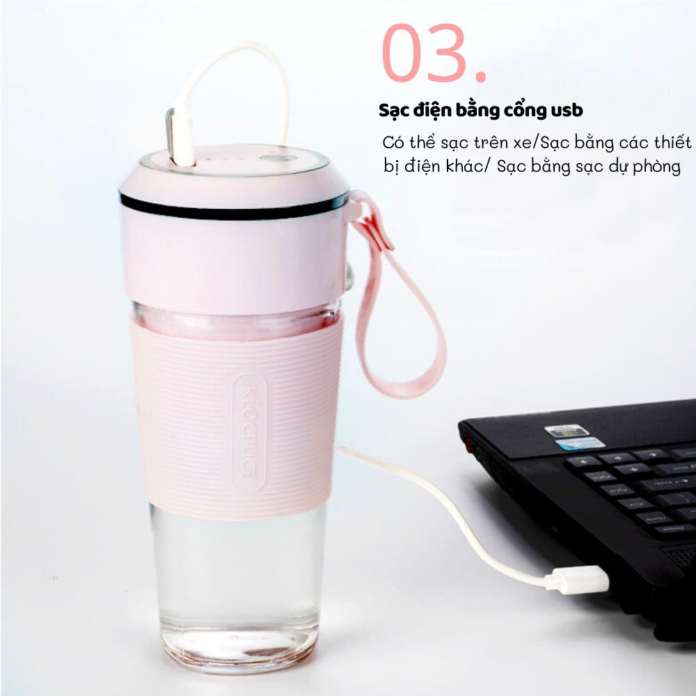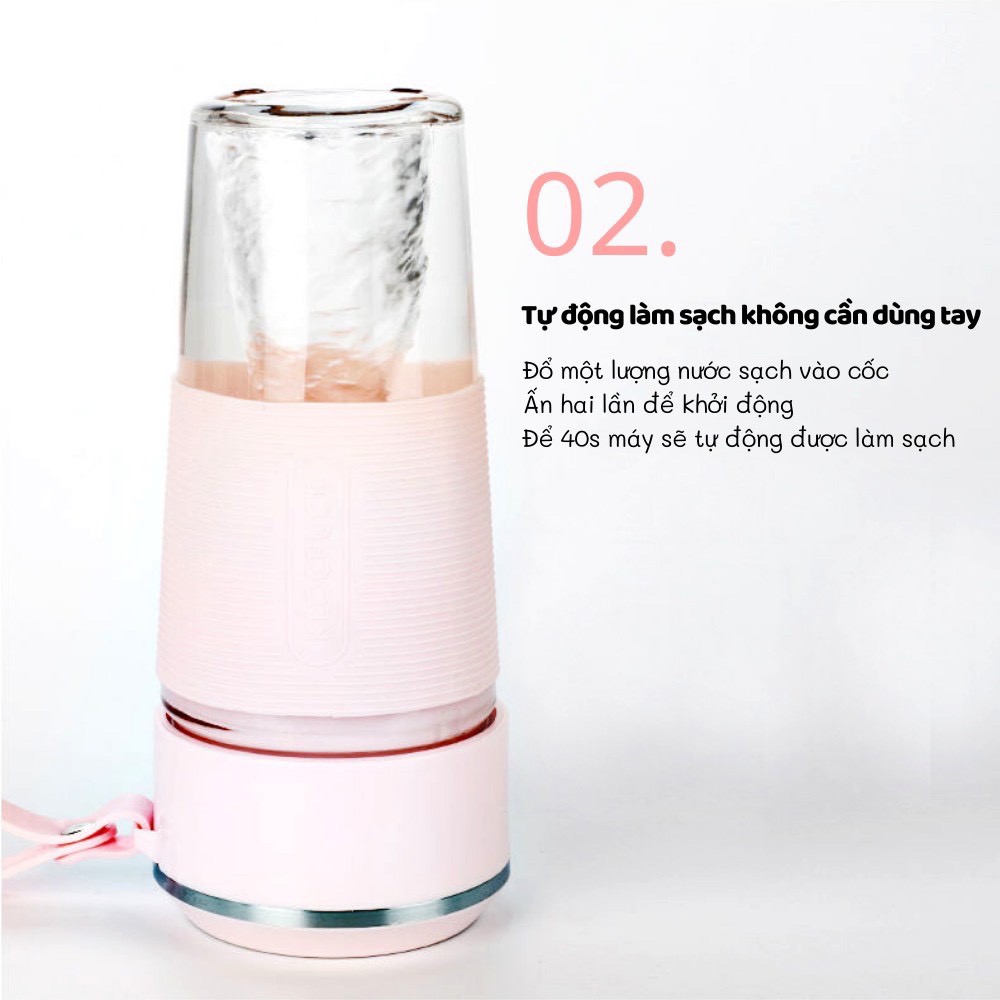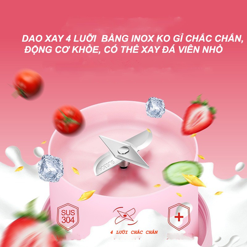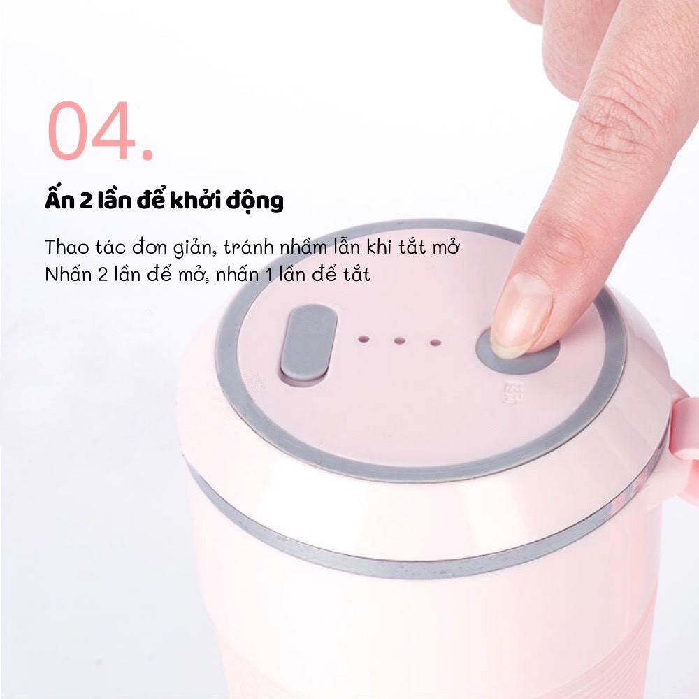 - Máy xay Sinh tố mini cầm tay tiện lợi hoạt động bằng pin, không cần cắm điện.