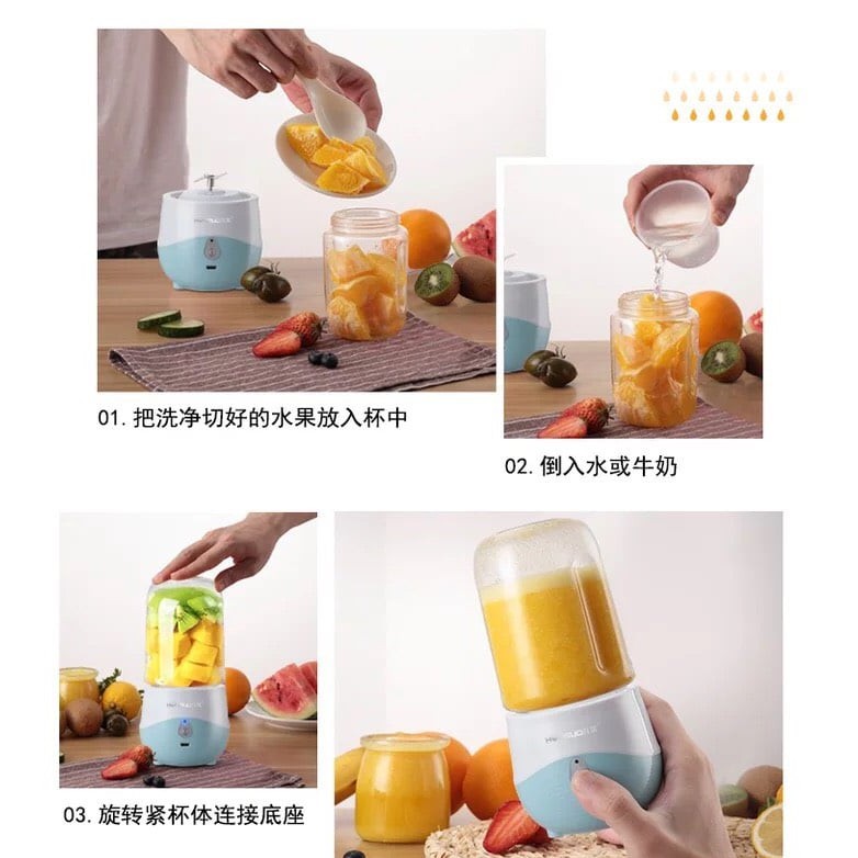Giới thiệu Máy xay sinh tố cầm tay mini sạc pin, Máy say sinh tố cầm tay đa năng mini 300ml HONGUO